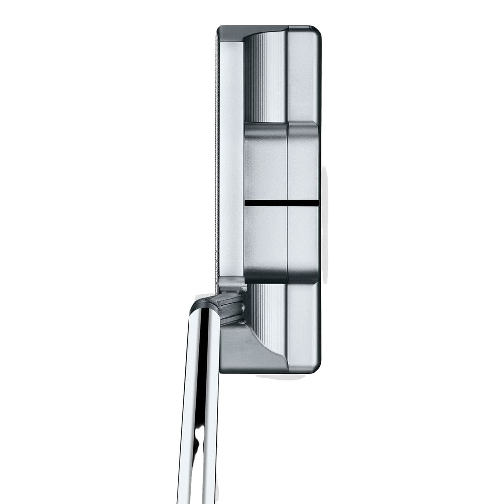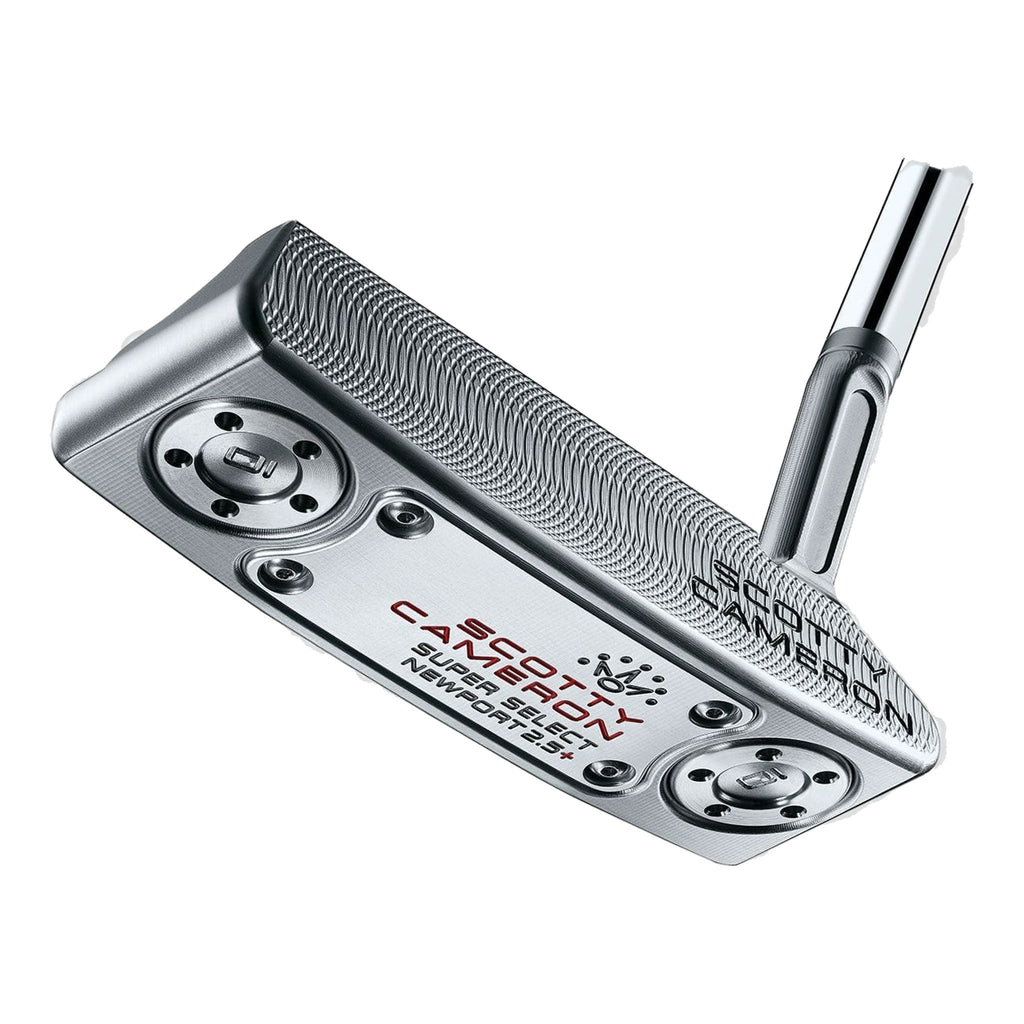 Der Scotty Cameron Super Select Newport 2.5 Plus Putter wurde entwickelt, um das Trägheitsmoment (MOI) zu erhöhen und die Gewichtsverlagerung in die Spitze beim Putten zu fördern. Er ist aus 303 Edelstahl mit einer massiven, doppelt gefrästen Schlagfläche gefertigt. Dies verleiht dem Newport 2.5 Plus Putter das typische satte und kraftvolle Scotty Feddback.